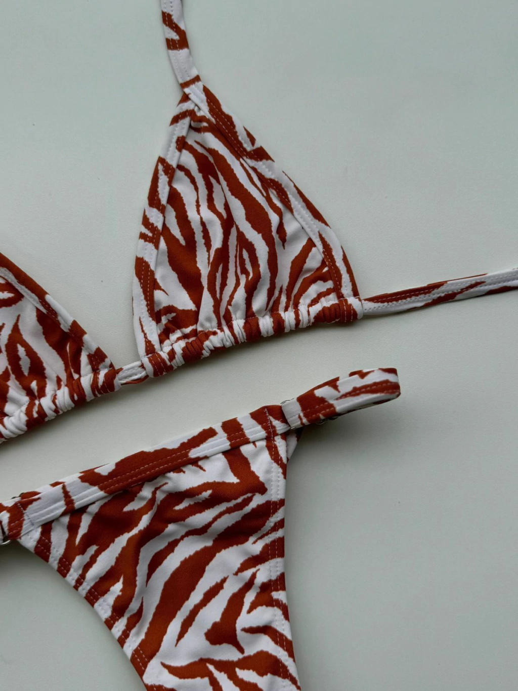 Nosso biquíni fita é composto pelo sutiã cortininha e a calcinha com regulagem nas laterais com o bumbum fio dental.